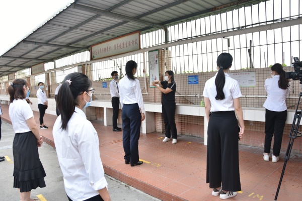 据了解,在本次演练开始前,锦标学校黄元感校长、分管安全卫生工作的陈德亮主任先后进行了发言及演练培训。黄校长强调,所有参演人员思想上要高度重视,严肃认真,从整体式体会掌握演练流程,认真领会演练的目的,明白自己的工作任务和参演角色、规定动作,保证参与排练预演,遵守演练时间安排,确保成效,为正式复学复课工作积累经验、奠定坚实基础。陈主任要求,所有参演人员要切实做到“六个到位”和“六个不准”。这既是本次演练的要求,也是学生复学复课后的一段时间内的行为规范,务必牢记并严格遵守。“六个到位”即:防护到位、消杀到位、通风到位、行为到位、监控到位、宣传到位;“六个不准”即:不准串位、不准串室、不准串楼、不准喧哗、不准外出、不准传谣。