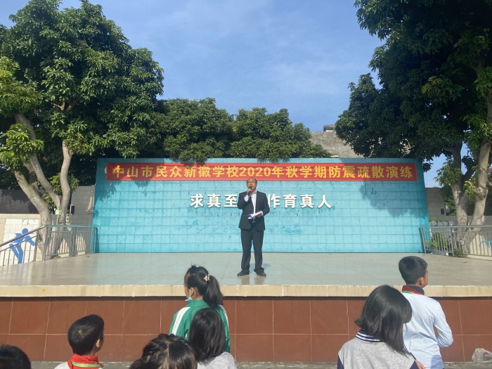 为了进一步加强学校安全工作,增强学校师生防震安全意识,本着坚持“安全第一,预防为主”的方针和“以人为本”的思想,提高自救防范能力,做到在发生灾害时,能临危不乱,有序、迅速地按照消防逃生路线安全疏散,最大限度地降低地震带来的损失,从而提高学生紧急避险、自救自护和应变的能力。中山市民众新徽学校于10月21日上午组织全体师生举行了防震疏散演练。
