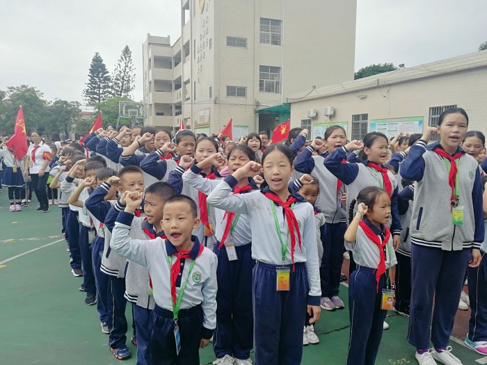 最后,在大队辅导员吴丝敏老师的带领下,少先队员们大声呼号:“时刻准备着!”,响亮的呼号声为本次入队仪式画上了圆满的句号。