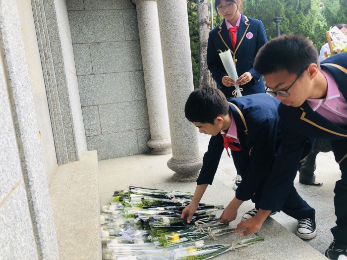 来到烈士陵园,怀着对革命先烈的崇敬之情,大家缓步走进中山市革命烈士陵园,首先由学生代表向庄严肃穆的“革命烈士纪念碑”敬献花圈,全体师生向长眠于地下的英烈们默哀。