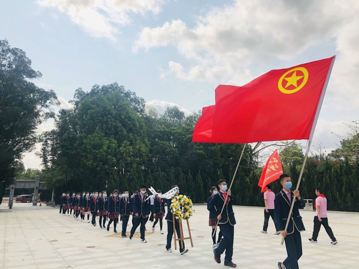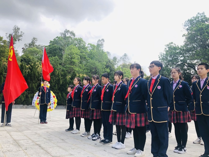 春风送花表哀思,青松滴翠寄深情。无限哀思无限情,清明时节祭英雄。为深入推进党史学习教育,悼念革命烈士,缅怀先烈的丰功伟绩,教育师生继承革命先烈的光荣传统,弘扬民族精神,继承先烈遗志。在我国传统祭奠日——清明节来临之际,中山市德恒学校德育处、校团委组织团员和少先队员等学生代表共32人到达中山市革命烈士陵园举行以“缅怀革命先烈,弘扬民族精神”为主题的缅怀先烈遗志革命传统教育。