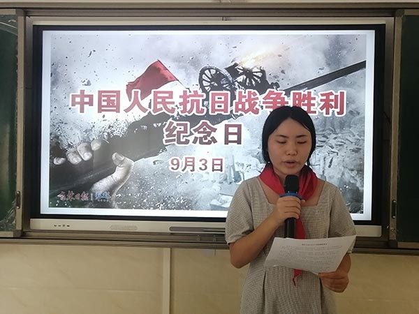 每年的9月3日是一个特殊的日子,今年是抗日战争胜利75周年的纪念日。何校长从抗日战争胜利纪念日讲起,各班级利用多媒体平台观看了中华民族抗战史视频和19岁的董存瑞舍身炸碉堡的电影片段,还讲述了小英雄王二小、雨来、张嘎的抗战故事,何校长引领同学们致敬历史,缅怀先烈,学习英雄们强烈的爱国心,成为一个真正勇敢的人!
