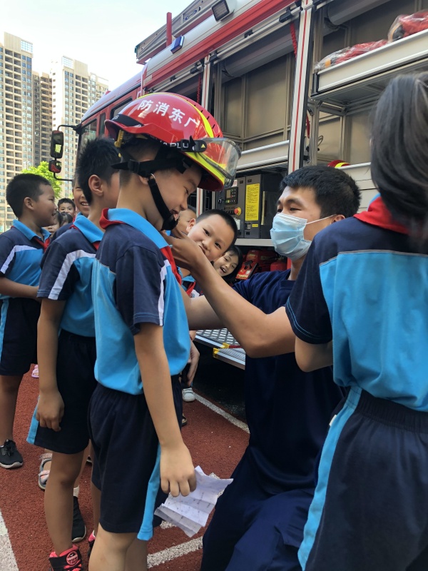 接着,中山市南区专职消防队成员对全体师生宣讲消防知识,现场讲解灭火器的使用方法并演示了灭火过程,个别老师和同学还亲身体验如何正确使用灭火器。随后,同学们还参观了消防车,听消防员现场讲解部分消防装备。