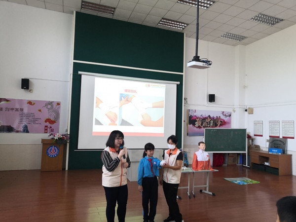为在校园普及小学生的卫生救护常识,培养学生的安全意识,提高自身保护能力,使学生掌握自救、互救本领,11月12日下午,中山市红十字会、人防宣传教育机构的工作人员来到北台小学,为四、五、六年级的师生开展了一场应急救护宣传活动。