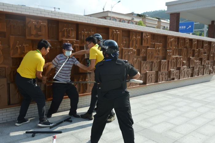 为确保学校广大师生生命安全,维护正常的教学秩序,进一步增强保安应对与处置突发事件的能力,提高保安队伍防暴反恐反应能力和协调水平,2020年 9 月30日竹秀园中心小学开展反恐防暴安全演练。