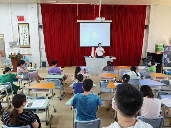 会上,吴丽欢主任首先对全体教师进行了主题为“疫情防控下返校心理建设指引”的心理健康教育培训。她带领所有老师温习梁剑玲老师的讲座《同心育人 用责守护》,从教师的自我关怀、各类学生的跟进辅导、具体问题的心理调适等方面进行详细的讲述,同时就老师发现心理异常学生应该如何处理的步骤进行了非常清晰的讲解。吴丽欢主任提出,复学之后,学生的心理健康应摆在第一位,教师要适当组织学生开展团康活动,用爱心和责任心迎接学生;另外,她还提出学生心理健康教育不仅仅是班主任、心理老师的工作,每位科任老师都应将学生心理健康教育放在重要位置。