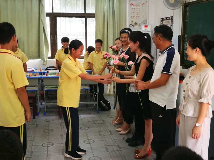 9月10日,良都中学简朴温馨的教师节庆祝活动从清早的第一缕芬芳开始。朗朗书声驱散晨检的慵懒之时,良都中学的行政领导和志愿者同学们早已奔走于办公室和教室,为敬爱的老师们献上一束鲜花,道上一声“节日快乐”,娇艳的花瓣映衬着老师喜笑颜开的笑脸。