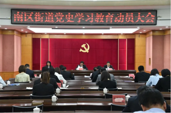 3月11日,南区街道召开党史学习教育动员大会。南区街道党工委书记郭渊主持大会并讲话。南区街道党政班子全体成员、机关单位中层正副职、各社区和经联社书记参会。