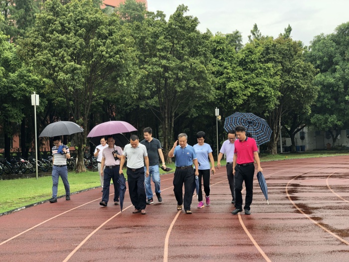9月15日上午9时,南头镇党委委员薛焯明,镇宣传办公室(教体文旅局)主任(局长)姚华, 镇教育和体育事务中心主任谢桂华,宣传办(教体文旅局)综合股股长洪爱华和镇文体教育局吴剑华老师一行五人冒雨到南头镇初级中学视察并指导工作。南头镇初级中学校长卢新泉、副校长梁红令、副校长毛贤伟和学校总务处主任李忠汉全程陪同视察。