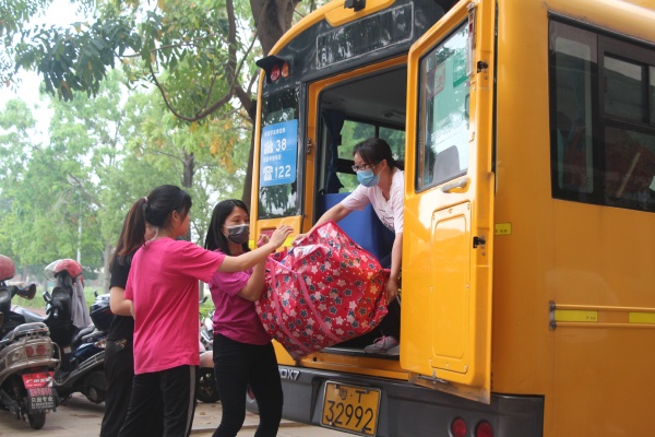 南头三鑫学校按照中山市2020年春季学期第三批学生返校的工作部署,全校教职员工团结协作,定于5月18日和25日分批返校复学,为防止开学时学生及家长的聚集,确保所有学生安全稳定,有序复学,5月13开始,南头三鑫学校提前组织学生家长运送行李,工作达到了理想的效果。