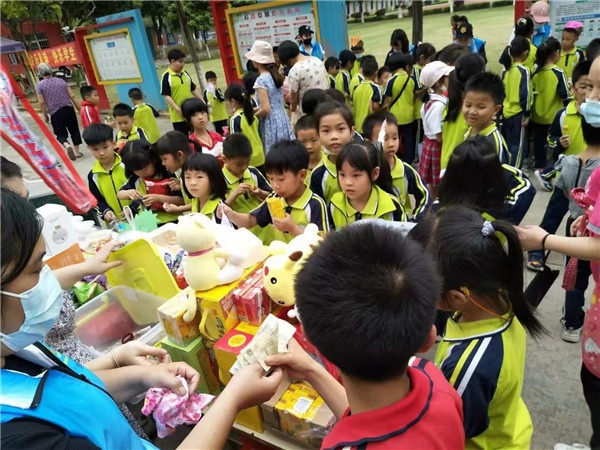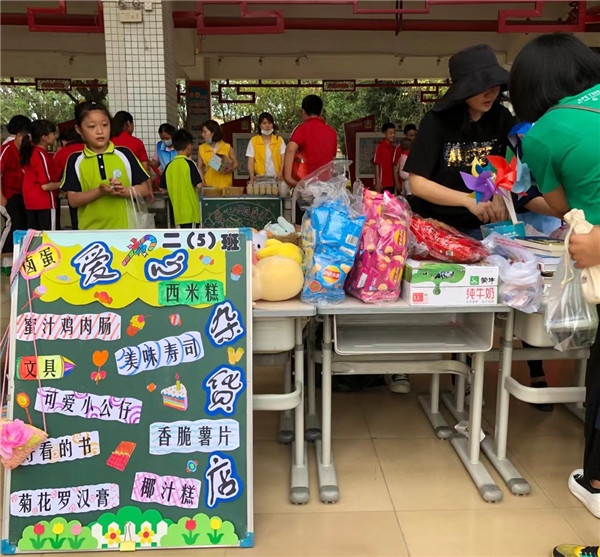 早在活动开始之前,各班就已经集思广益,用心准备班级义卖物品和摊位海报。“走过路过,千万不要错过!”“走过有限,爱心无限!”“留下爱心,带走幸运。”此起彼伏的叫卖声,吸引着同学们。在现场,孩子们以爱之名,从心出发,以精美的布局吸引人流,以琳琅满目的商品吸引众人的目光。