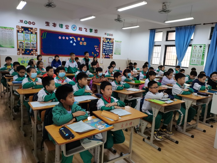 春风和煦,阳光明媚,在学校教导处的工作安排下,数学科组的“推广听课”活动正有序开展。今天学校行政班子和部分老师走进了五(1)班崔奉球老师的课堂。