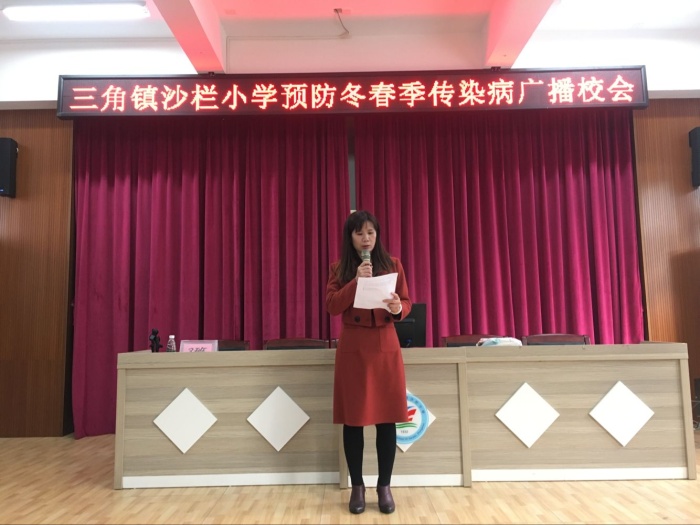 近期,为进一步做好学校冬春季传染病防控工作,增强学生的自我防范意识以及提高对冬春季传染病知识的知晓率。三角镇沙栏小学于12月24日上午8:00,召开了冬春季传染病防治健康教育会议。本次会议由沙栏小学崔焕英校长主讲。