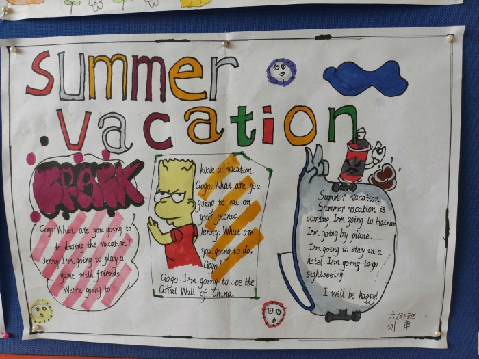 这次英语作品展览收集了五、六年级的手抄报和书法作品,同学们利用周末时间,用自己丰富的想象力,创造了一幅幅五彩缤纷、可爱斑斓的精美作品。五、六年级的孩子正处于爱画,爱想象,爱英语学习的阶段。这样一种形式能够激发学生学习英语的兴趣,积累各种节日文化知识,通过动手动脑,设计构思在纸张上,孩子们更乐于运用阅读和生活中学到的英语,把平时积累的好词好句合理的运用到英语手抄报创作当中,使语言更生动形象,这样就达到了主动查找、看、说、想、写的有机结合。
