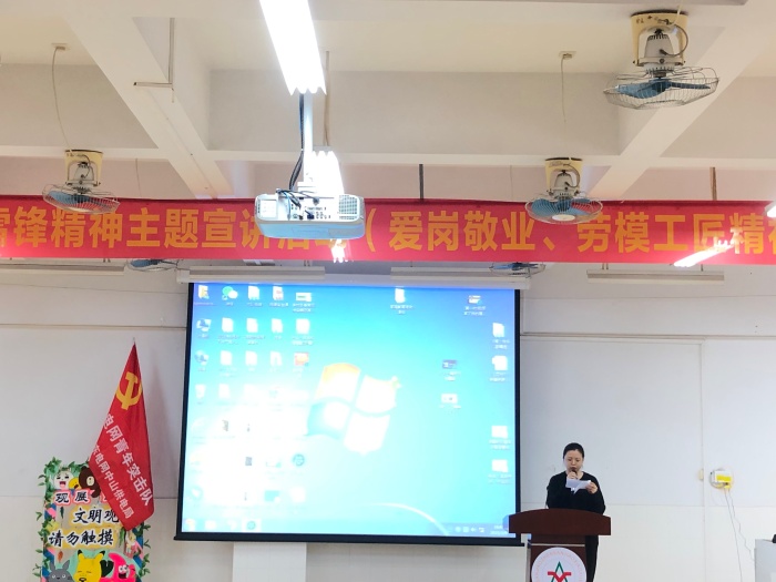 接下来,中山市三角镇供电分局综合部李亮棠主任同样为同学们带来了精彩的宣讲——《我的工匠精神》。李亮棠主任作为土生土长的三角人,在参加工作以来不断实践,不断创新,开启了另一片广阔的天空,在2018年被评为“中山好人”。他是群众口中亲切的“棠哥”,是电气领域出色的“安全卫士”。以李主任为首的创新工作室经过多年研究,发明了多项创新成果并成功申请了多项国家专利。李亮棠主任将这些成就都归功于“工匠精神”,他表示:工匠精神是一种职业精神,它是职业道德、职业能力、职业品质的体现,其内涵包括敬业、精益、专注、创新等方面的内容。自己也不断要求自己贯彻习近平总书记关于雷锋精神中“要不断发扬干一行爱一行,专一行精一行的敬业精神”的论述,完成自己的工匠精神提升之路。
