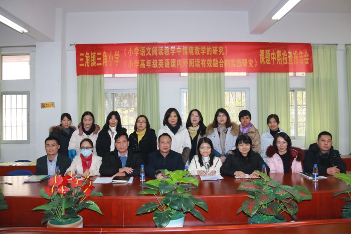 冬日是结蕾的季节,更是充满期待的时分。1月8日上午,三角小学镇级课题“小学语文阅读教学中情境教学的研究”和“小学高年级英语课内外阅读有效融合的实践研究”中期报告会在三角镇三角小学会议室举行,三角镇教育和体育事务中心梁文副主任和吴萍老师莅临指导,陈见洪校长、王辉副校长等行政,以及课题组全体成员参加了会议。