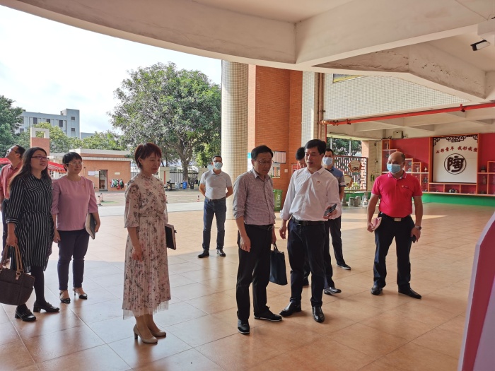 2021年3月30日上午,中山市教育工委副书记廖诚一行四人在三角镇党委委员李铭霞、镇教体局局长杨慧芬、教育和体育事务中心主任段子元的陪同下莅临三角镇中心小学调研指导学校党史教育工作。三角镇全体公办学校校长、黄圃镇兄弟学校校长一同参加此次调研会。