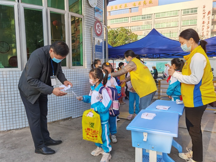 迎着朝旭,全体行政在雍陌小学门口迎接孩子们,并给孩子们颁发五福卡,开启集五福活动。在美丽的雍陌小学,一声声亲切的早上好,一张张灿烂的笑脸,温暖着每个孩子的心,给他们带来了一天美好的心情。