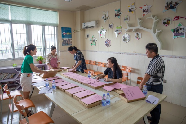 调研组首先齐聚二楼教师阅览室,听取肖志红校长《从心出发,走向通达》的专项工作汇报。肖校长从文化渗透、具体举措、活动搭台这三大板块全面汇报了学校的心理健康教育工作。新圩小学把“水润文化”融合进日常的心理健康教育工作,塑造学生坚韧通达的心理品质,给调研组成员们留下了深刻印象。数量众多的心理疏导个案也让在座的专业人士频频点头。