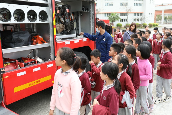 接着,三乡消防大队队员向全体师生讲解和示范灭火器的使用步骤,并请部分师生代表上前操作,让师生掌握了灭火器的使用方法。随后,组织师生参观消防车,提高了师生对消防器材的了解。本次消防演练活动的开展,强化了师生的消防安全意识。