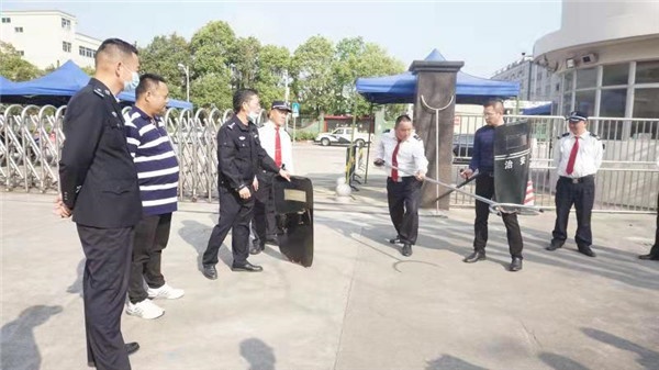 下午3时50分,“突发暴力入侵校园”安全演练开始。广播警报声响起,总务处黄立冬主任随即通知全体师生进入紧急戒备状态,全校学生迅速返回教室, 21位班主任立刻进入班级组织班上学生关好门窗、拉上窗帘、堵住门窗,安静地躲藏课桌下。办公室的其他教师立即召唤在教学区玩耍的同学到办公室静声躲藏。学校维稳队员马上出动支援保安,上前协助阻止、制伏“歹徒”。与此同时,接到“警情”的白石派出所郭盛本副所长等6名民警赶到现场,警报解除。演练结束。黄立冬主任总结了此次演练的成功与有待提升之处,之后由班主任根据班级演练情况进行总结。此后,在派出所郭副所长的指挥下,吴宝强警员现场向全体保安和男老师教授、示范怎样有效使用防暴武器,怎样安全快速地阻止、擒拿入侵人员,确保师生安全、校园安全。各维稳队员学得认真,并亲身实践。