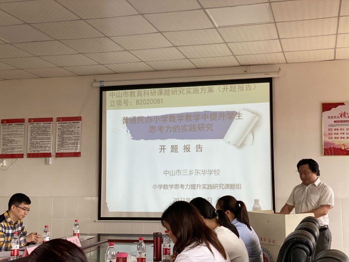 2021年3月29日上午,中山市三乡镇雍陌小学数学市级课题《线上资源在农村小学数学教师专业发展中的应用研究》在东华学校举行开题活动。