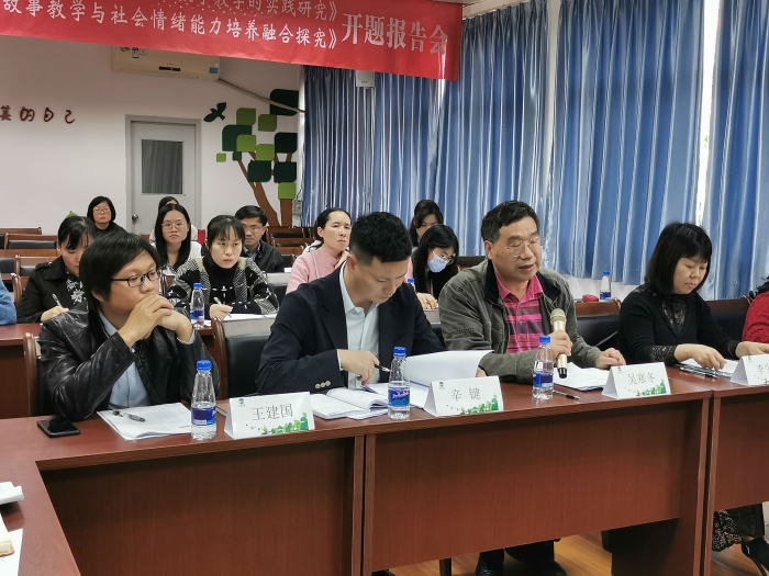 接着,由丘秀文老师对青年课题《小学英语绘本故事教学与社会情绪力培养融合探究》从选题背景、国内外研究现状、研究价值和意义、研究目标和内容、研究思路和方法、研究进度6个方面作介绍。镇小学英语教研组组长赵淑珍老师也是高度肯定了这一选题。认为选题符合教研方向,真实具有时代性,跨学科的新颖。接着,市教研员辛健老师就开题报告作出细致的点评,尤其对研究内容进行了深入的思考。