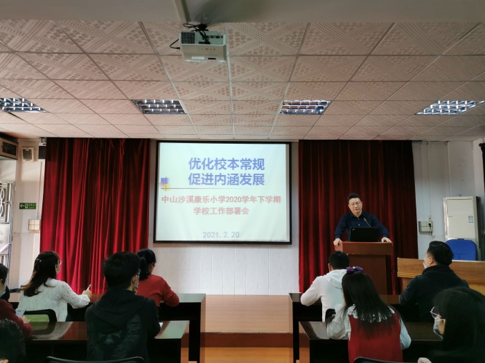春暖花开,春光和煦!在愉快的寒假结束之际,为确保本学期学校工作的顺利进行,中山市沙溪镇康乐小学于2021年2月20日召开了2020学年第二学期学校全面工作部署会,全体教师参加了此次会议。本次会议由吴伟标校长主持,上午主要是校本研训和学校整体工作部署,下午则由学校各部门根据实际进行细节布置。