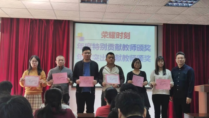 第二环节是荣耀时刻的颁奖环节。主要针对上学年度对学校作出特别贡献和突出贡献的老师,颁奖前吴校长分别针对获奖教师一一表扬所作出的贡献,包括完成工作的态度、超额完成的工作任务和出色完成本职工作等;然后分别进行颁奖,虽然只是校级奖励,但老师们都非常珍视这个特别奖项。