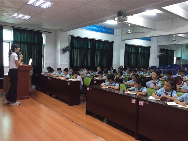 首先,学校组织五六年级学生到报告厅参加禁毒教育讲座。禁毒社工详细地介绍了什么是毒品,毒品的种类、特征以及毒品的危害。同时结合生活中真实的案例,用通俗易懂的语言向学生讲解禁毒法律法规和吸食毒品的严重不良后果,以血的教训、铁的事实,告诫学生们认清危害,树立自我保护意识。课堂最后,社工还进行了情景演练互动,使同学们认识到在社会生活中,要时时提高警惕,千万不以好奇为由侥幸去尝试,更不能受诱惑寻求刺激,面对毒品要坚决抵制,才不至于踏上违法犯罪的道路。