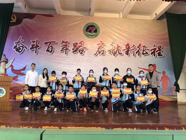 最后,由高主任宣读上学期在省、市、镇各项学科比赛获奖的老师、学生,乐群村党总支部副书记缪溢汞为获奖老师颁奖。乐群村党总支委员、村委会副主任梁锦荣,党总支委员兼村委委员杨亮途和党总支委员梁梦晓、乐群小学李荆校长和梁君豪主任分别为获奖学生颁奖。获奖同学排着整齐的队伍,上台拍照留念,手捧奖状,个个笑逐颜开。同时,高主任鼓励同学们,在新的学期不断拼搏,不断努力,争取优异的成绩。