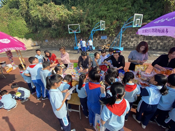 首先,全体参加活动的师生、家长有序地、安静地集中在本中队,在学校大队辅导员罗春霞老师作简短的讲话并宣布“义卖活动”开始后,师生、家长们积极响应、踊跃参与,三五成群、两两成伴,到摊位卖力吆喝,到各摊位看看逛逛。