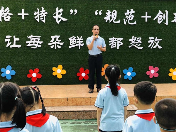 9月1日上午,龙头环学校召开了“加强文化引领,打造新优质学校”为主题的开学典礼。典礼上,庄严的升旗礼仪式后,吴发志校长代表全体师生,欢迎一年级小朋友,祝贺他们正式成为一名小学生。吴校长还对暑期创建文明城市的工作进行汇报,美德是立身之本,文明是城市之魂,要求全体师生尊纪守法,做一个文明守礼的好公民,让文明之花开遍龙头环校园。