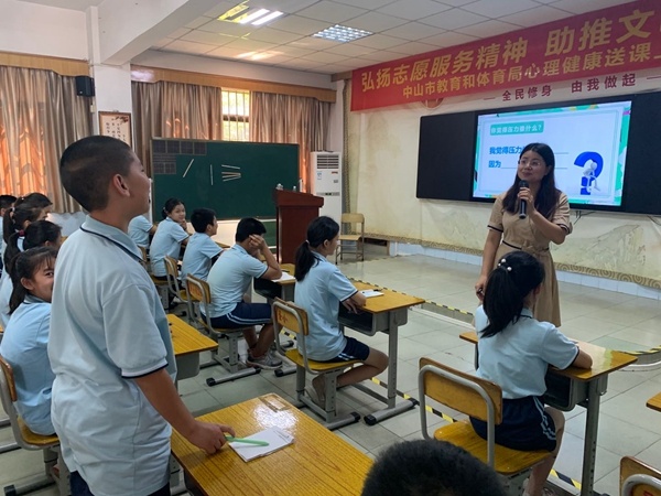 特殊的疫情,久别的校园,当孩子们再次回归课堂,面对来自生活、学习多重压力的闭环式管理。针对特殊时期,沙溪镇圣狮小学为了帮助孩子积极调整自身情绪和心理状态、及时对孩子进行心理疏导,6月28日下午,特别邀请沙溪初级中学心理健康教师罗丹给学校五、六年级全体孩子上了一节主题为《我的压力我做主》的心理健康教育活动课。学校德育领导、心理健康教师及五、六年级四位班主任共同参与了课堂。