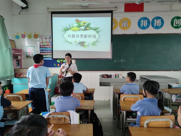 活动中,队员们在辅导员的仔细讲解中,认识到了:生活垃圾分类是按垃圾的不同成分、属性、利用价值和对环境的影响,并根据不同处置的要求,分成属性不同的若干种类。实现垃圾减量化、资源化和无害化;中山市生活垃圾分类工作目标是全市到2025年基本建成生活垃圾分类处理城乡一体化系统。同学们再通过观看视频和课件,对“中山市生活垃圾分类标准”、“有害垃圾分类情况”和“垃圾处理方式”有了更深入的了解。最后,大家共同约定,主动做好垃圾分类,例如:多阅读垃圾分类宣传报刊,继续加强对垃圾分类的学习;在班里设置废纸回收箱,提高废纸的利用价值;把有害垃圾做指定投放……