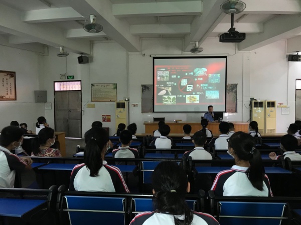 沙溪镇公安分局缉毒民警叶雍赟警官在讲座中首先播放了钟南山院士代言的毒品预防教育宣传片,倡导青少年远离毒品,享受“无毒青春,健康生活”。