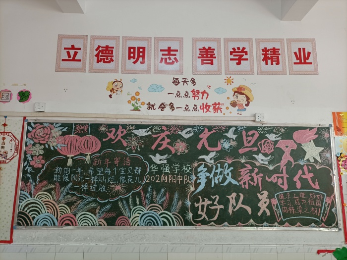 为了迎接元旦佳节的到来,丰富少先队员们的课余生活,挖掘队员们的特长,展示队员们的风采。华强学校在12月28日至31日举办了“喜迎元旦到来 奋进新时代 争做新时代好队员”手抄报、黑板报比赛。华强学校的少先队员们踊跃报名,上交了许多优秀的作品,学校12月31日在校内成功举办展览。
