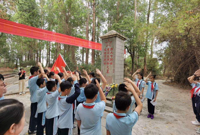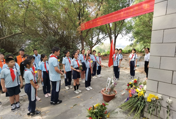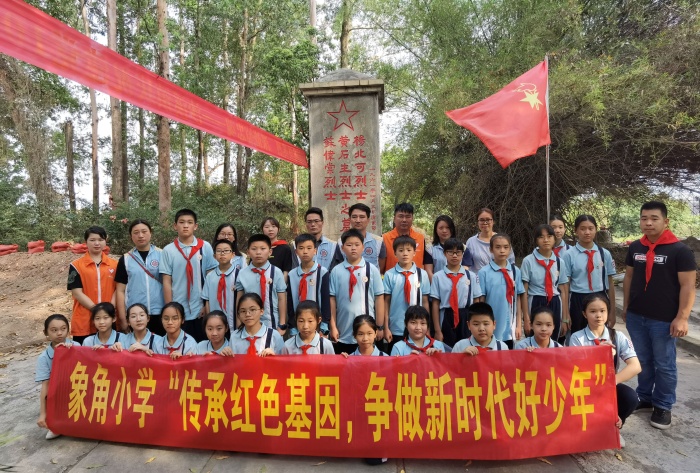 “青山有幸埋忠骨,松柏常翠伴忠魂”。象角小学党支部书记陈燕婷向队员们介绍了革命先烈黄石生烈士的英雄事迹,黄石生革命先烈的高大形象瞬间印刻在队员们的脑海中。号召队员们永远铭记革命先烈,继承先烈遗志,传承红色基因,争当时代新人。