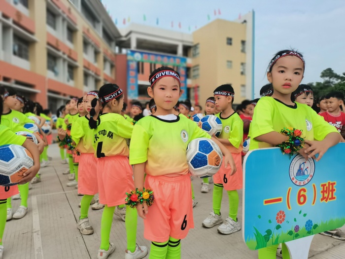 运动场上,家长义工方阵和各班方阵排着整齐的队伍,穿上统一的服装,师生们个个精神饱满,充满了拼搏的活力与必胜的自信。各个班级还进行了富有班级特色的创意表演,表演精彩不断、亮点纷呈。有绚丽夺目的个人才艺表演,有变化多端的展板拼接,还有动感活泼的现代热舞,台上的领导和台下的师生无不击掌赞赏。阳光洒满了学校的每一处角落,也照亮了1700多颗充满期望与梦想的心灵。紧随其后的是庄严肃穆的升旗仪式在振奋人心的激昂国歌声中举行。
