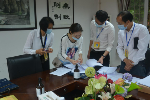 在资料查阅环节,验收组成员详细查阅了防控制度、方案、流程、台账及相关的培训等资料,并现场与学校分管领导进行沟通反馈。