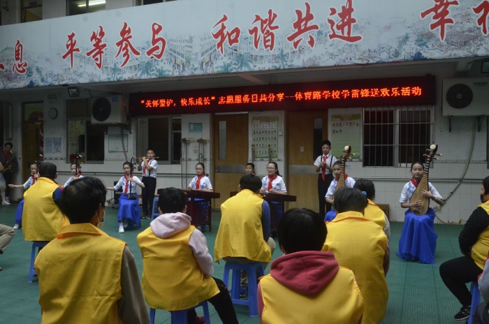 3月5日是我国第58个“学雷锋纪念日”,当日下午,中山市文明办、市残联、石岐街道文明办与体育路学校联合举办“关怀爱护,快乐成长”志愿服务日共分享活动。体育路学校30多名师生到石岐工疗站,为工疗站学员送欢乐,带来歌曲《红红的太阳》、《宪法在你我身边》等节目表演,和学员们游戏互动。