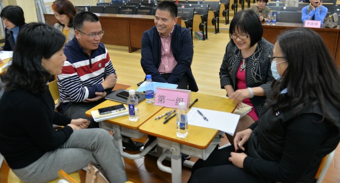 接下来就是工作坊式研讨。如何才能让阅读推广落地生根,扎到实处?参与培训的人员分成8个小组开展研讨,在研讨的过程中,大家主动发言,讨论热烈。随后各小组代表进行汇报。大家分别从学校管理层面、转变教师家长观念层面、学校阵地建设、阅读时间的保障、课程的建设、阅读书目的选择与充实等各个方面提出了新的想法,让大量阅读推广有了更开阔的思路。