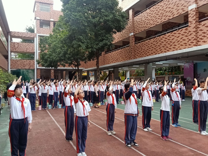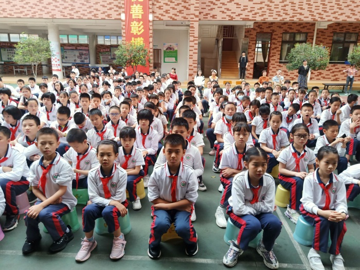 最后,陈惠良主任号召同学们以杨殷精神为榜样,传承红色基因,弘扬红色文化精神。同时结合该校“奋斗百年路·志当存高远”德育主题,向同学们介绍了本学期学校开展的学习党史的主题活动:全校学唱《没有共产党就没有新中国》、观看一部爱国电影;低年级组参观一次爱国主义教育基地、学画一个党徽或一面党旗;中年级组访问身边的一位优秀共产党员,讲一个中国共产党英雄的故事;高年级组阅读一本中国革命的历史书……通过开展丰富多彩的活动使“小脚丫们”了解中国共产党的百年发展史。