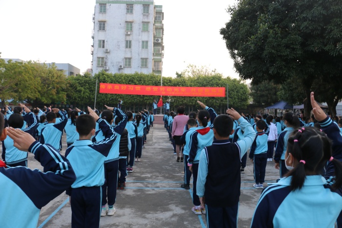 接着,六(1)班彭嘉欣同学在国旗下发表讲话,激励同学们在新的起点,新的航程中扬帆起航。