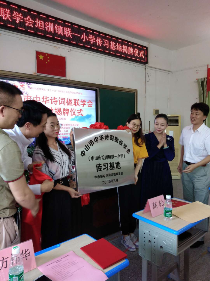 为弘扬中华传统诗词楹联之美,促进中华优秀传统文化的传承与发扬。2020年10月21日下午,中山市中华诗词楹联学会坦洲镇联一小学传习基地揭牌仪式暨“诗说中山”主题讲座顺利举行。
