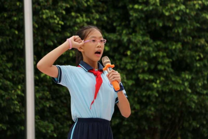 最后,优秀队员代表五(2)班的杜绮雯和新入队队员代表二(3)班黄心悦同学在讲话中也纷纷表示,作为一名少先队员,自己一定不会辜负老师的教导,努力学习,时刻用一名优秀少先队员的标准来严格要求自己。