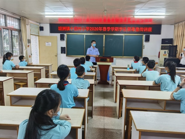 为进一步提高和巩固学生们的安全意识、法制意识,5月18日,是新学期返校复课的第一天,坦洲镇十四村小学以电教室为主会场,各班教室为分会场,召开了2020年春季学生法制安全教育讲座。本次讲座由学校法制副校长郭有胜警官主讲。