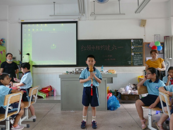 接下来,每班开展了花式多样,生动有趣的 六一庆祝活动。看!队员们脸上灿烂的笑容;听!队员们悦耳的歌声。最受孩子们欢迎的是美食分享会。看那一张张小嘴一边吃着同学间分享的美食,还一边欢乐的与老师、同学们交流玩耍,画面多么的惬意啊!面对这样美好的画面,摄影师老师赶紧按动快门,一张张的照片留下了这个夏天、这个六一最美好的记忆。