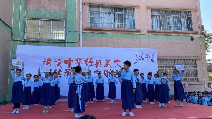 为弘扬中华民族优秀传统文化,培养学生的民族自豪感,全面提高师生的人文素质,培养学生爱国主义情怀和民族精神。新合小学于12月29日举办以“诵读中华经典美文 传承华夏文明古风”为主题的活动。