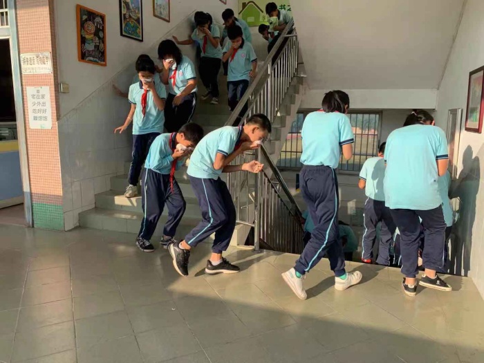 随着校园内响起的警报声,在班主任的带领下,全体学生用湿毛巾、手帕等捂住口鼻有序撤出教学楼;整个应急演练活动规范、有序、紧凑、高效,按照疏散演练方案设定的逃生路线,迅速而有序地到达指定安全位置。